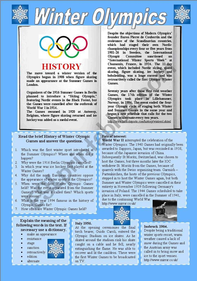 Winter Olympics Free PDF Download Learn Bright