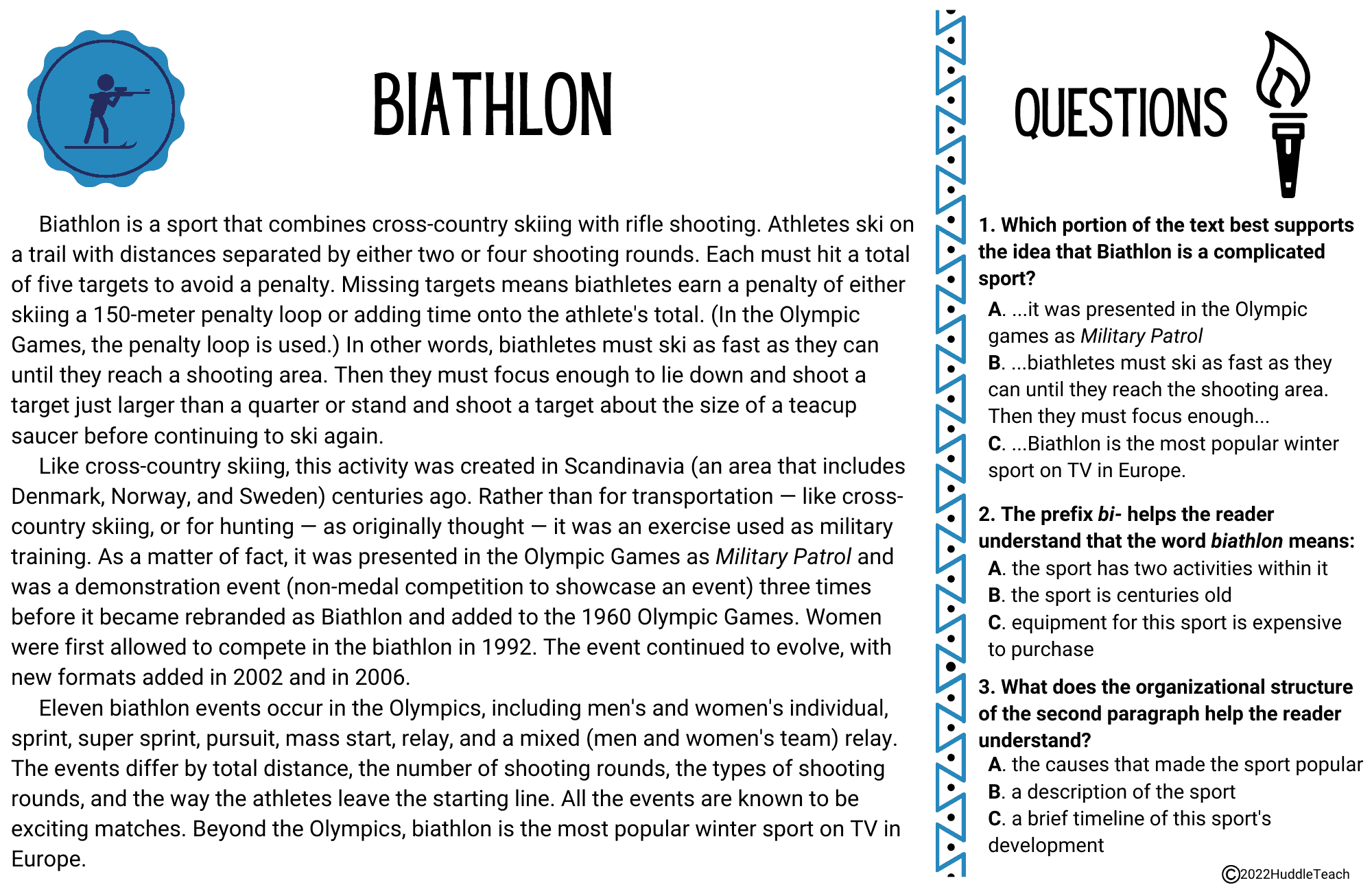 Winter Olympics Reading Passages Nonfiction Structures U0026 Test Question Practice HuddleTeach