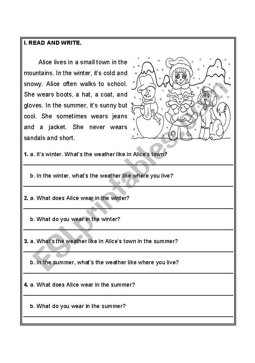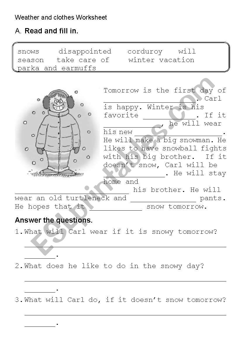 Weather Clother Reading Fill In ESL Worksheet By Kangaroo1106