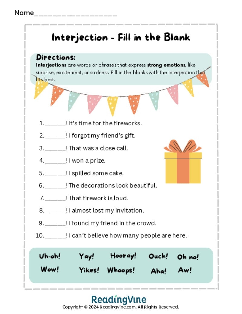 Interjection Worksheets ReadingVine